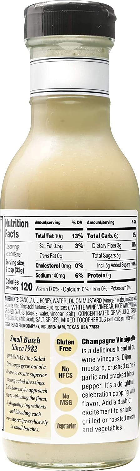 Briannas Champagne Vinaigrette Dressing 12 Fl Oz Gluten Free Vegetarian Kosher Salad Dressing Made In Small Batches Walmart Com
